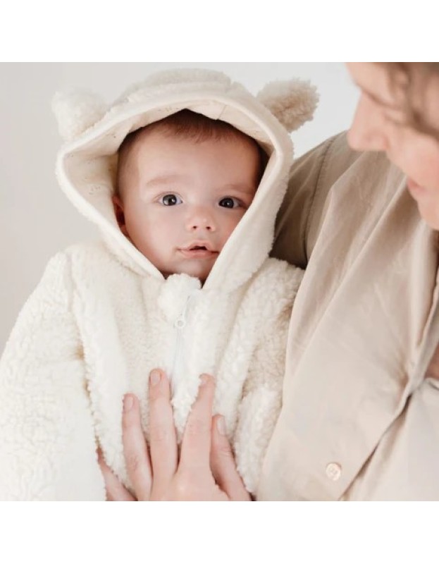 Овој скафандер во бела боја е дизајнирано за максимална удобност. Изработено е од мек и топол материјал, што му дава прекрасно чувство на удобност на вашето малечко. Комбинезонот е направен од органски памук и е отпечатен со сладок принт „Little Goose“. Благодарение на практичниот патент на предната страна, скафандерот е лесен за облекување и соблекување. Слатките зајачки уши на качулката додаваат разигран и шармантен акцент.