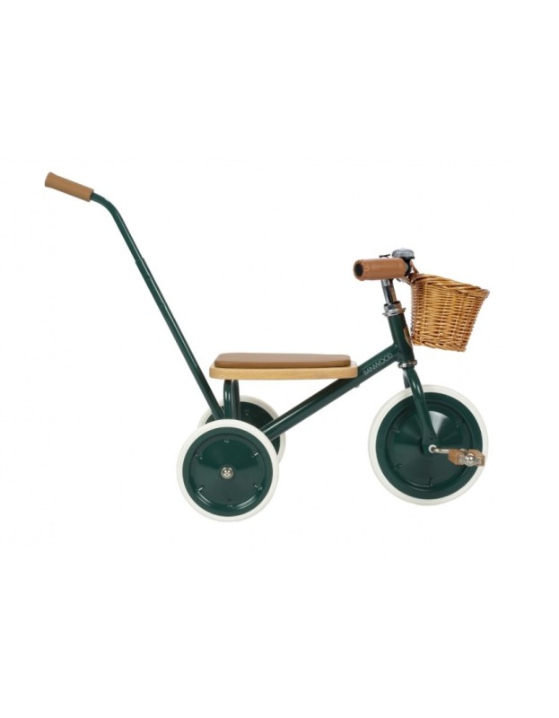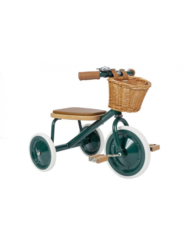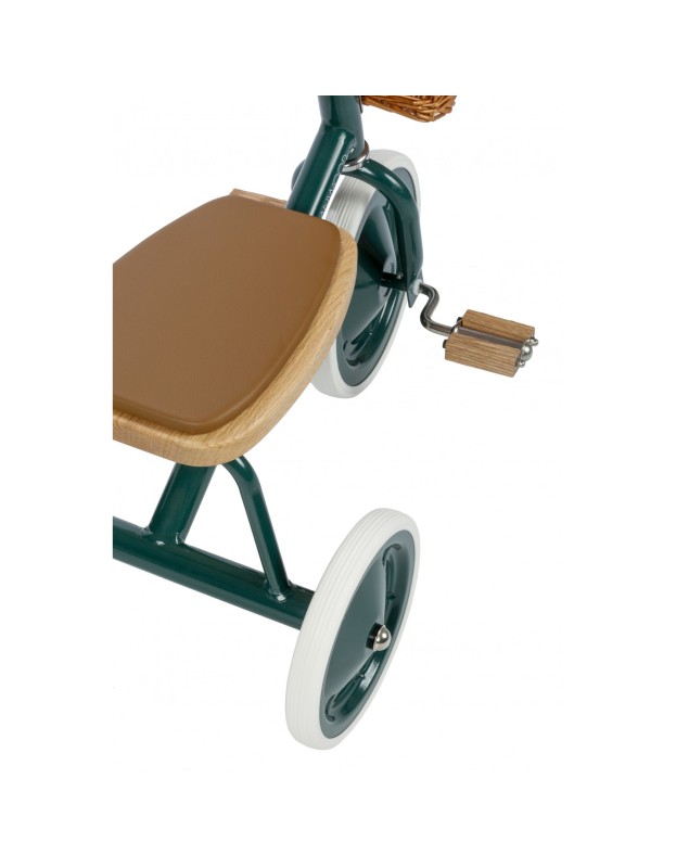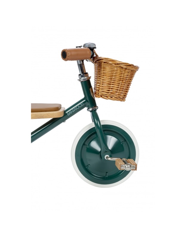 Погоден е за деца од 2 години и е направен да трае со генерации. Доаѓа со меко обложено дабово седиште, педали од дабово дрво и детали од веганска кожа. Има симпатична плетена корпа напред (може да се извади по потреба), за да ги понесете со себе најважните работи во паркот и и отстранлива рачка за туркање во задниот дел за да им помогне на најмалите да тргнат.
