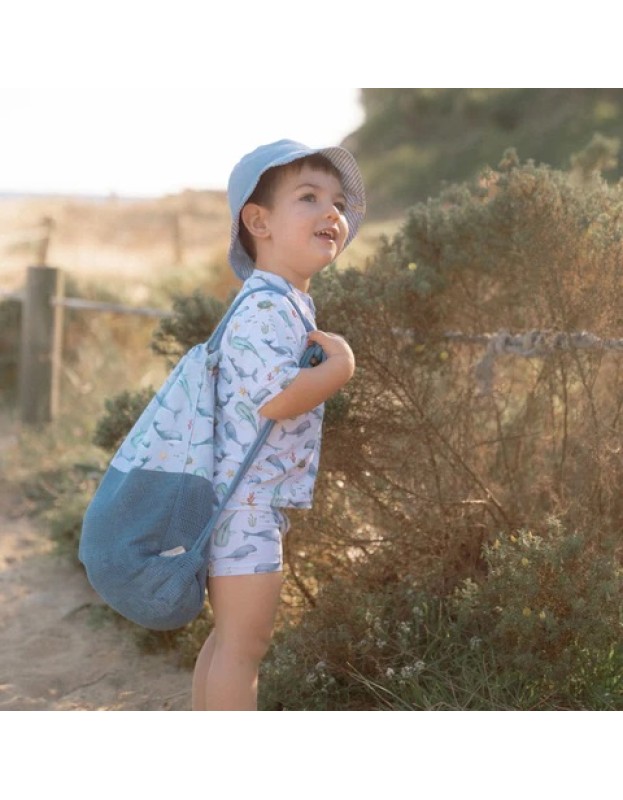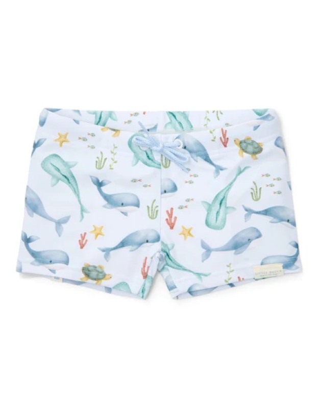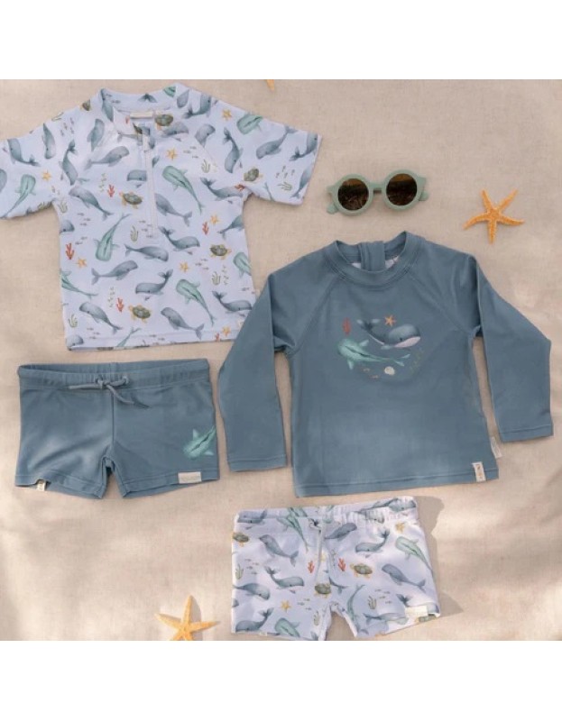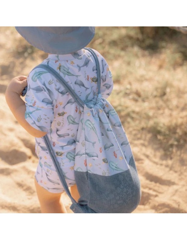 Овие удобни костуми за капење гарантираат дека ништо нема да ве спречи целосно да уживате во базенот или плажата. Одете на авантура и истражете го песокот и водата во потрага по скриени богатства. Слаткиот дизајн на Ocean Sea Life се одликува со светло сина позадина украсена со китови кои грациозно се движат низ морето.
