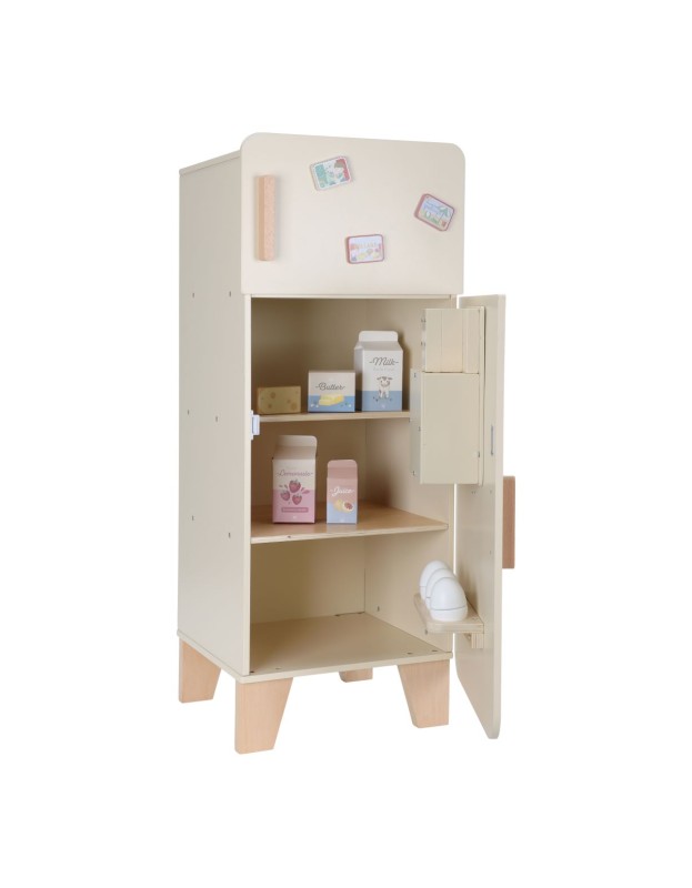 Фрижидерот има практичен замрзнувач со апарат за коцки мраз и многу простор за уредно складирање на намирници, вклучувајќи и специјален држач за јајца. Идеален за да ја направите замислената игра во кујната уште пореална. Со овој фрижидер, децата ќе се забавуваат со часови додека учат за храната и нејзиното складирање.
