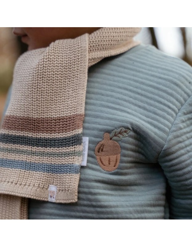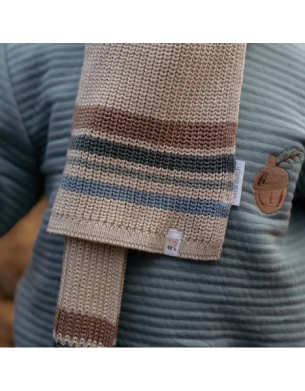 Одржувајте го вашиот мал авантурист топло и стилизирано со овој мек, плетен шал! Шалот има разигран допир благодарение на обоените ленти на краевите. Совршен за да му даде на секој аутфит весел изглед. Овој шал се чувствува толку убаво што вашето мало дете нема да сака ниту да го соблече внатре. Комбинирајте го без напор со сите парчиња од есенската/зимската колекција и дозволете му на студот да дојде!