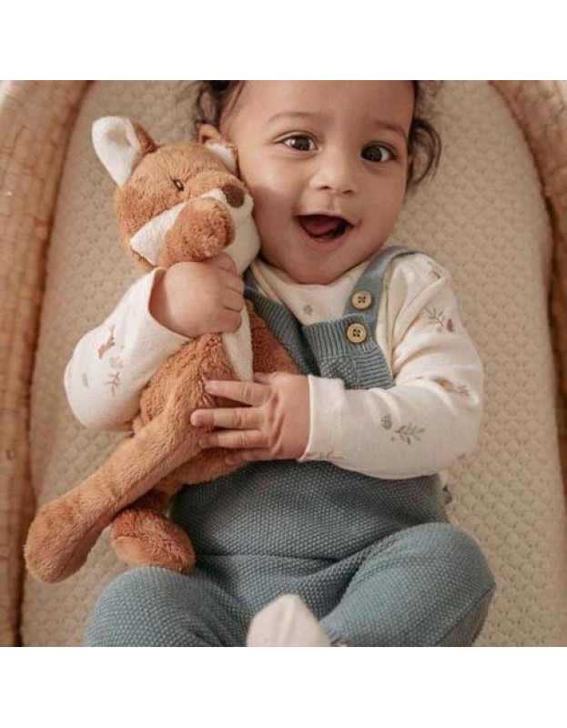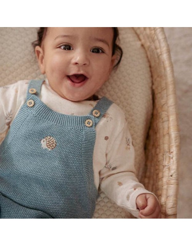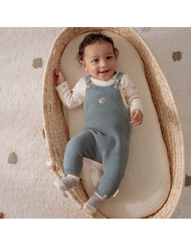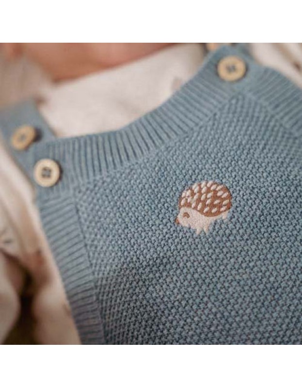 Оваа мека плетка го обвиткува вашето малечко во волшебна мешавина од сини тонови. Рафинираниот вез на лисица го краси предниот дел за шармантен изглед. Копчињата со дрвен изглед го надополнуваат комплетот и му даваат рустикален допир. Благодарение на употребата на органски памук, овој комплет нуди удобност, овозможувајќи му на вашето малечко целосно да ужива во сите дневни авантури. Комбинирајте го со други парчиња од координираната колекција Forest Friends. Достапно во големини 56, 62, 68 и 74, за совршено прилегање од самиот почеток.
