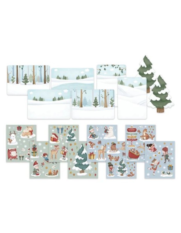 Оваа книга со налепници содржи повеќе од 150 божиќни налепници и 8 разгледници. Декорирајте ги вашите сопствени божиќни честитки и создадете уникатни, празнични уметнички дела!