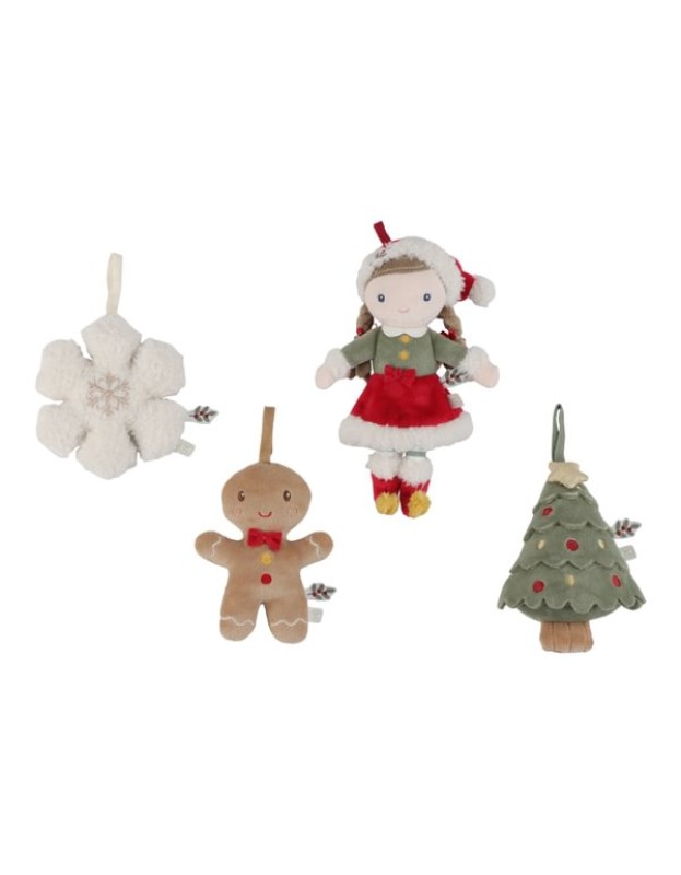 Претворете ја вашата елка во магична сцена со комплетот божиќни украси Роза. Во кутијата ќе најдете 4 плишани украси: божиќна кукла Роса, весел човек од меденки, празнична елка и мека снегулка – сите внимателно дизајнирани за да ѝ дадат на вашата елка само малку повеќе.