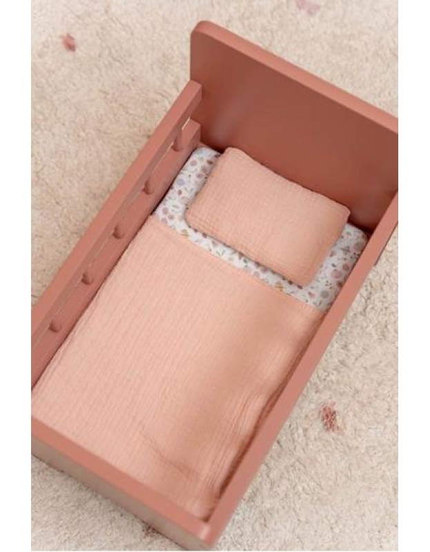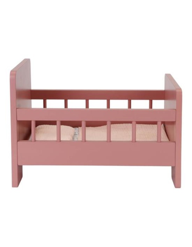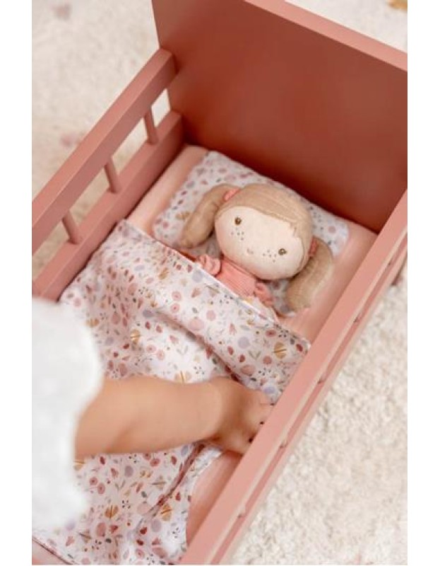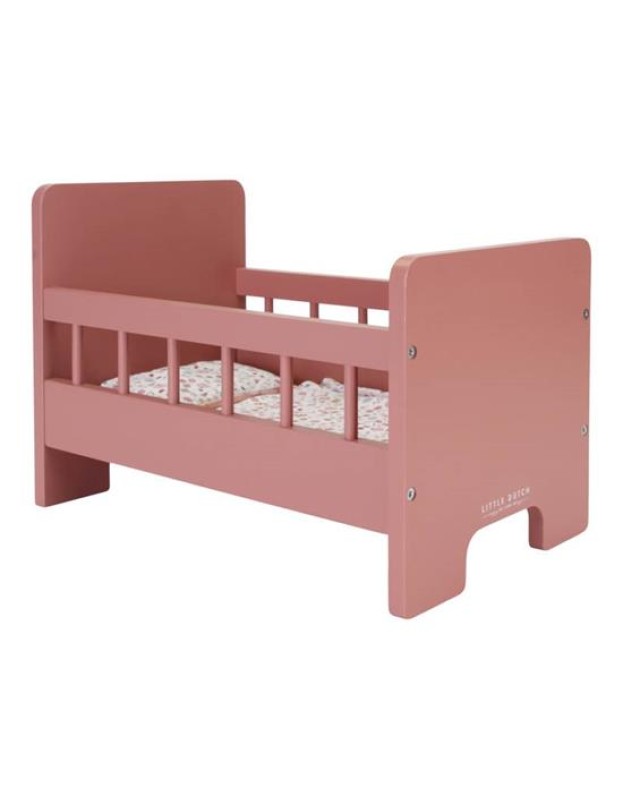 Направено е од цврсто дрво и за да биде дополнително удобно за куклите, доаѓа со перница, ќебе и чаршаф во прекрасниот дизајн Flowers and Butterflies.