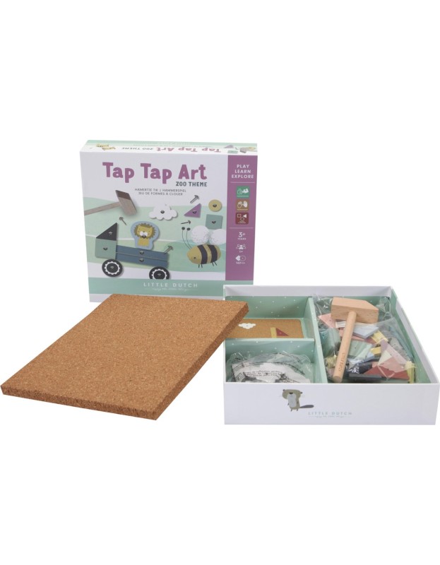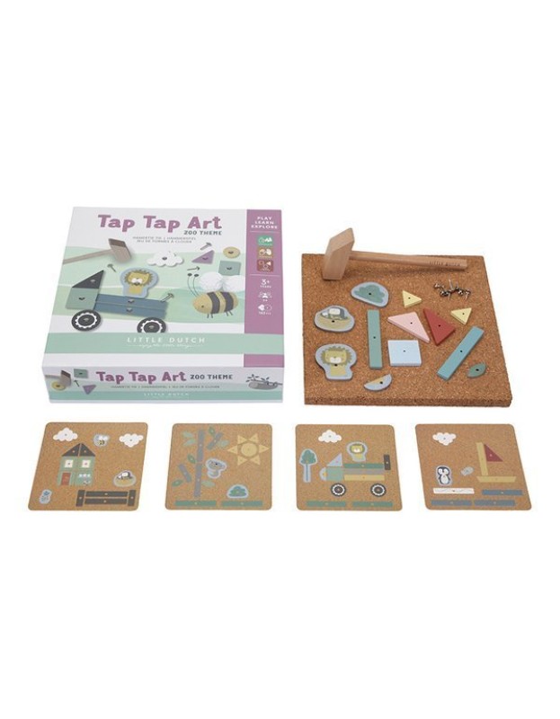 - Содржи: 1 основа од плута, 1 дрвен чекан, повеќе дрвени и картонски фигури, 5 примероци и 70 клинци