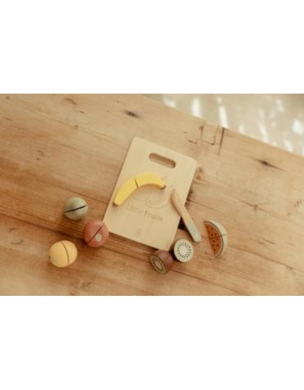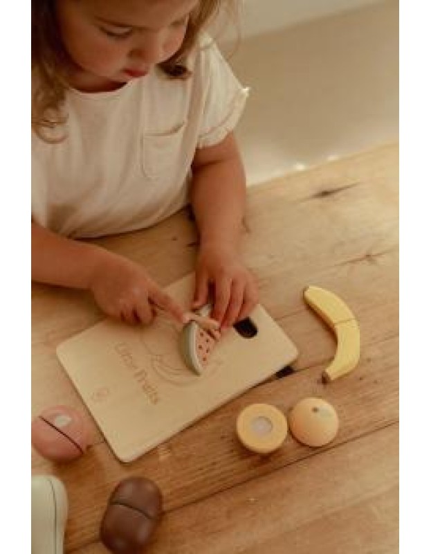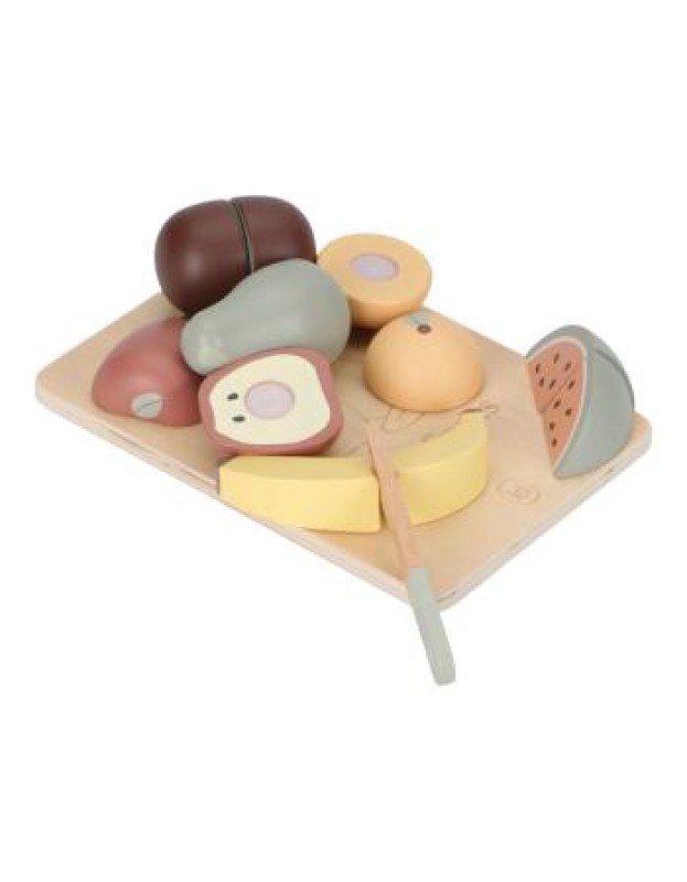 -Содржи: даска за сечење, дрвен нож, банана,јаболко,круша, кива, лубеница, портокал.