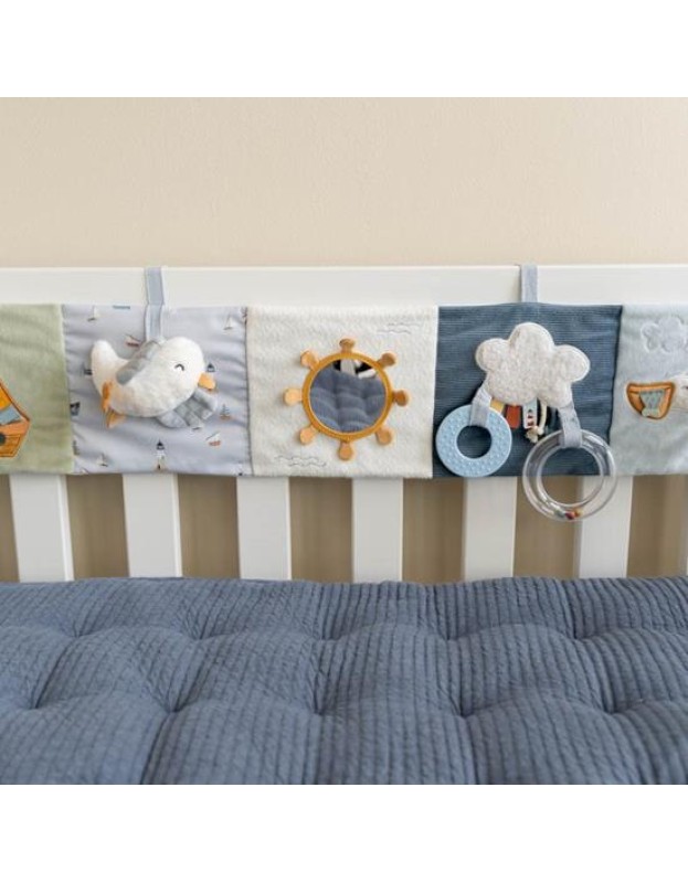 Закачете ја оваа висечка книга со активности на креветче или над подлогата за активност и забавата може да започне.