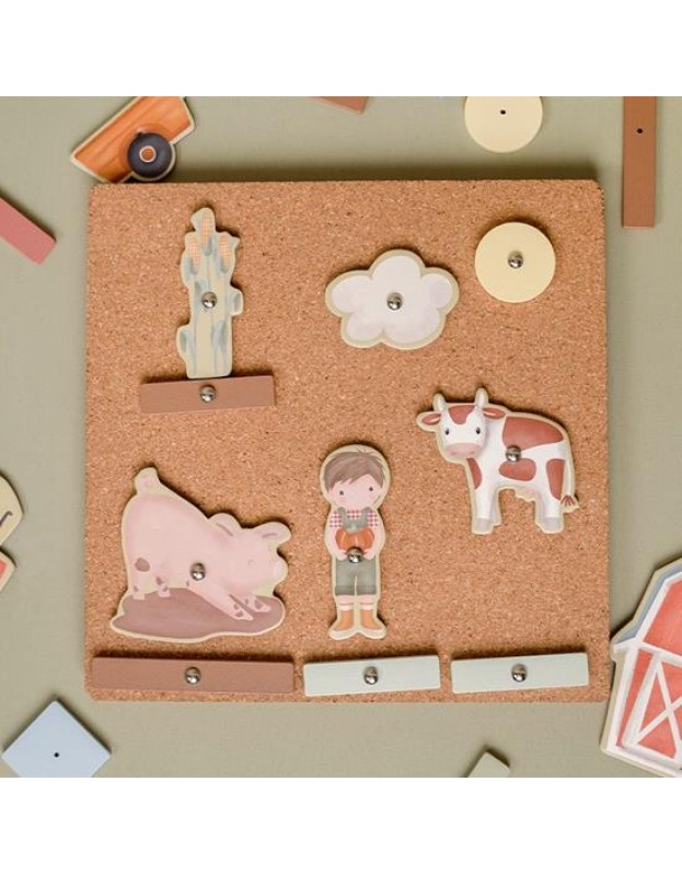 - Содржи: 1 основа од плута, 1 дрвен чекан, повеќе дрвени и картонски фигури, 5 примероци и 70 клинци