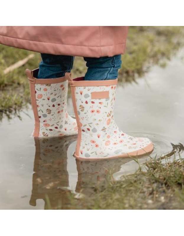Повеќето мали деца не можат да одолеат да скокаат во баричките кога врне дожд. Епа сега, тоа не мора да биде проблем, со овие слатки мали чизми за дожд! Не само што се водоотпорни, туку се и стилски. Додадете малку забава во изгледот на вашето малечко за дождливи денови со цветната тема Flowers & Butterflies на Little Dutch. Овие чизми за дожд се направени од гума со текстилна облога, отстранлива влошка и текстуриран надворешен ѓон отпорен на лизгање.