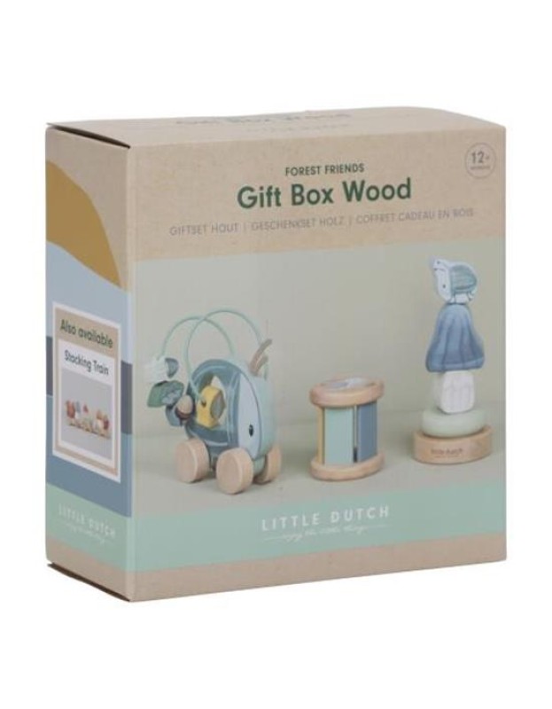 Оваа прекрасна кутија за подароци ги содржи најомилените дрвени играчки од волшебната колекција Forest Friends. Три прекрасни дрвени предмети дизајнирани за оние скапоцени први моменти на игра и развој. Внатре, ќе најдете тропалка во разни бои, совршена за поттикнување на фаќање и тресење за да го слушнете ѕвоното. Има шармантен мал сложувач, со коцки за да се изгради цвет со прекрасна пчела качена на врвот. И исто така, тркалачки еж, украсен со лист, пчела и цвеќиња кои се движат по спиралата на грбот. Сите три производи елегантно спакувани во една прекрасна кутија за подароци.