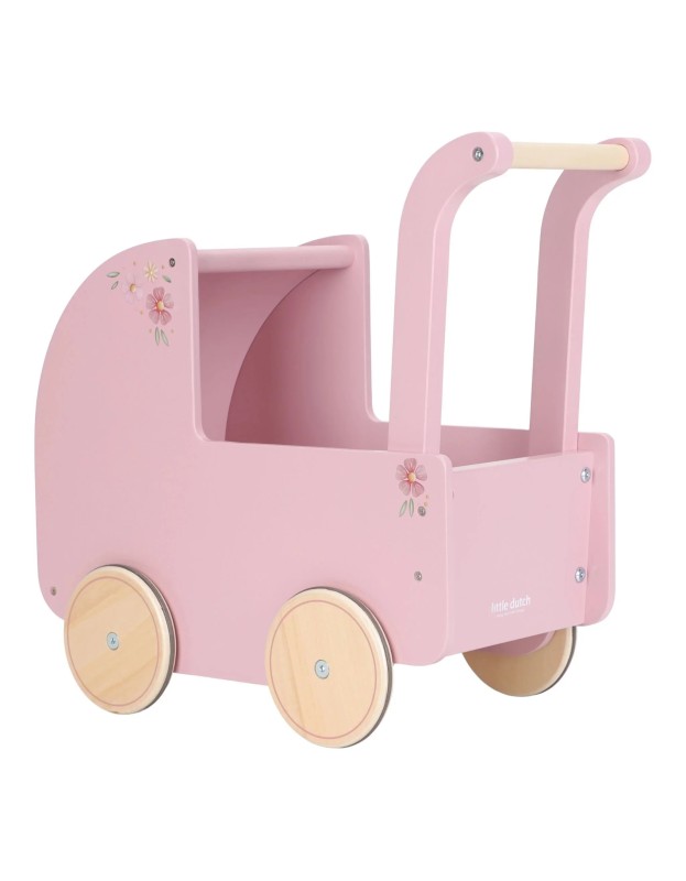 Однесете ја вашата омилена кукла или играчка на прошетка низ куќата со оваа прекрасна дрвена количка.