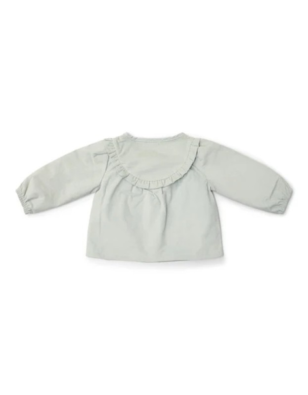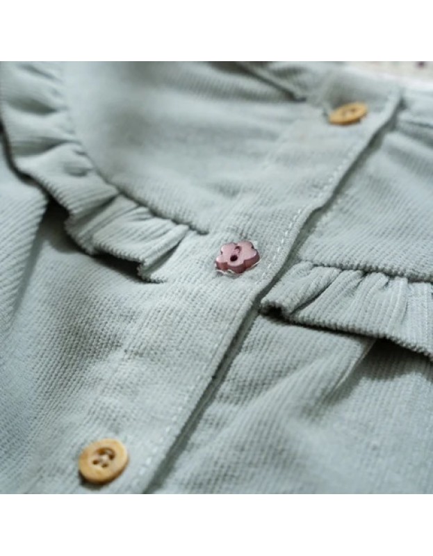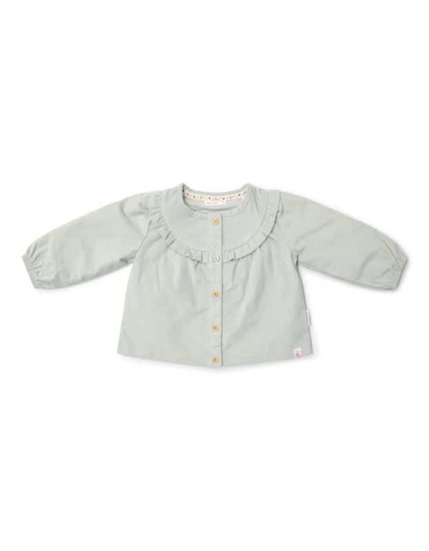 Оваа прекрасна блуза во нежно зелена нијанса има симпатични набори и разиграно копче во форма на цвет, покрај стилските копчиња со изглед на дрво. Изработена од 100% органски памук и сертифицирана од Oeko-Tex, таа е одговорен избор за удобна облека. Совршена за секоја пригода! Достапна во големини од 74 до 104.