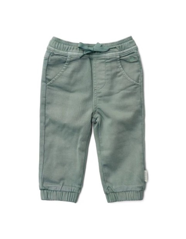 Овие прекрасни зелени панталони се изработени од супер удобна ткаенина за џогирање со доволно растегливост за да издржат какво било скокање, чекорење или лазење. Еластичниот појас, опремен со разнобојни врвки, обезбедува совршено прилегање - и им дава на родителите одмор од вечните „панталони што се влечат нагоре“. Со практични предни џебови и шик џебови на задната страна. Еластичните манжетни на долниот дел ги одржуваат овие панталони уредни, дури и ако вашето малечко не може да седи мирно. Достапни се во големини 74, 80, 86, 92, 98 и 104.
