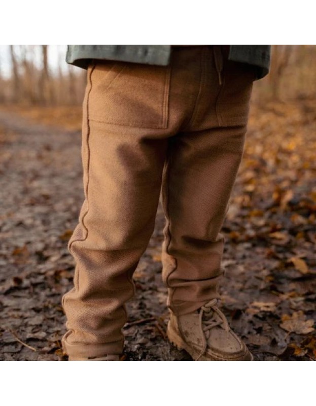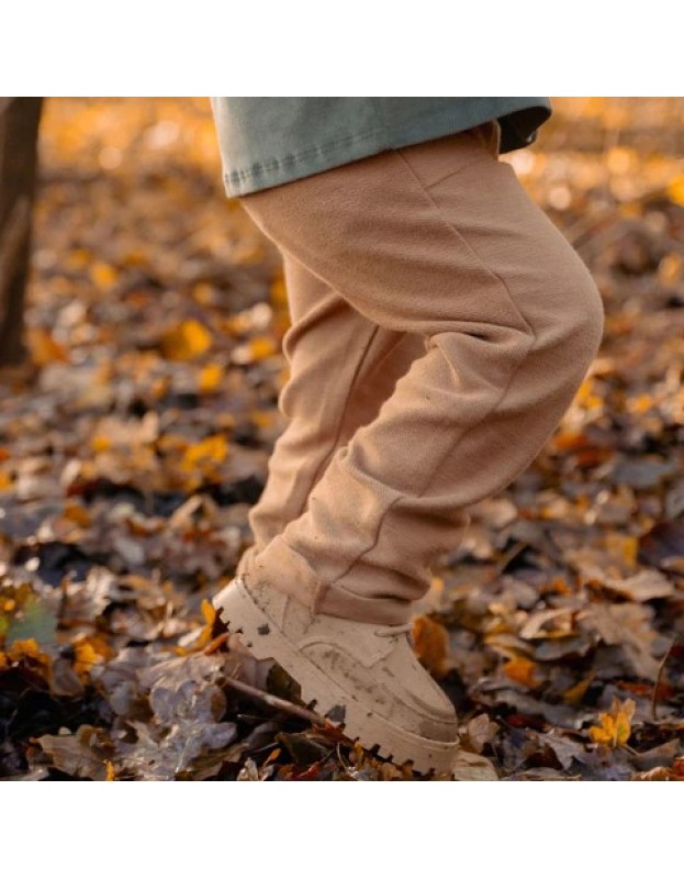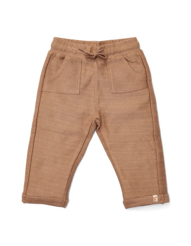 Овие кул кафеави панталони се задолжителни за малите авантуристи кои се подготвени да го истражат светот - или барем игралиштето. Направени од прекрасно мек органски памук со суптилна текстура, овие панталони нудат удобност и стил. Еластичниот појас со обоена врвка гарантира дека сè ќе остане на место, дури и по големо искачување. Со кул џебови и свиткан раб за малку повеќе стил.